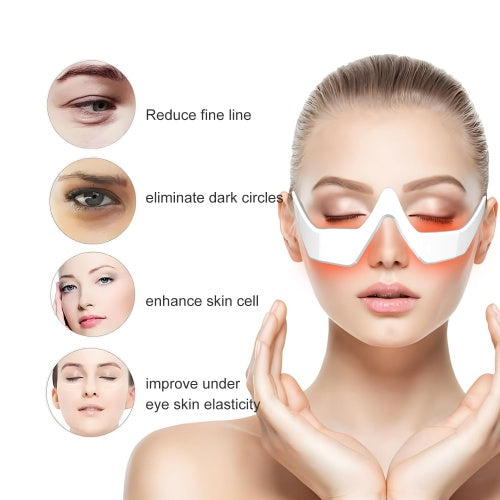 GlowAura™ - Red Light Therapy Glasses rejuvenate your eyes with advanced red light technology, reducing fine lines, puffiness, and dark circles. Experience effortless skincare and a radiant glow anytime, anywhere.